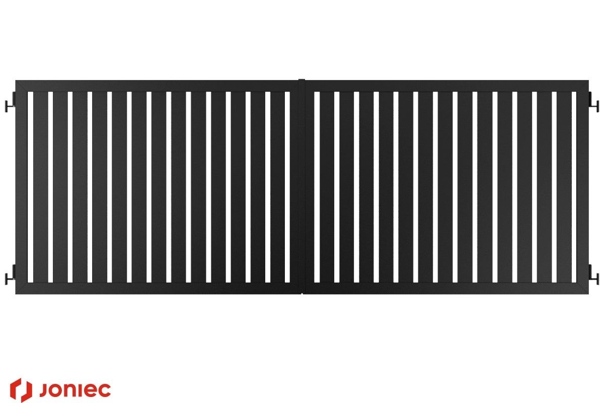 Profily 100 x 20 mm usporiadané vertikálne. Medzery medzi profilmi sa volia individuálne, v rozmedzí od 10 do 80 mm.