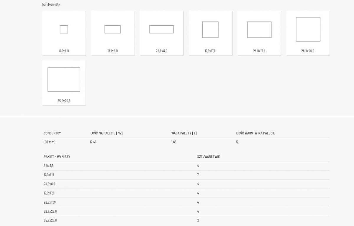 Concerto® je systém elegantných kociek s obdĺžnikovými a štvorcovými obrysmi. Povrchy jednotlivých prvkov pripomínajú bridlicový zlom a náhodné usporiadanie kociek vytvára dlažbu s očarujúcim, ale harmonickým a transparentným charakterom. Dlažobné kocky Concerto® možno klásť aj v radoch a pásoch, pričom je potrebné zabezpečiť, aby šírka usporiadania bola násobkom modulu.