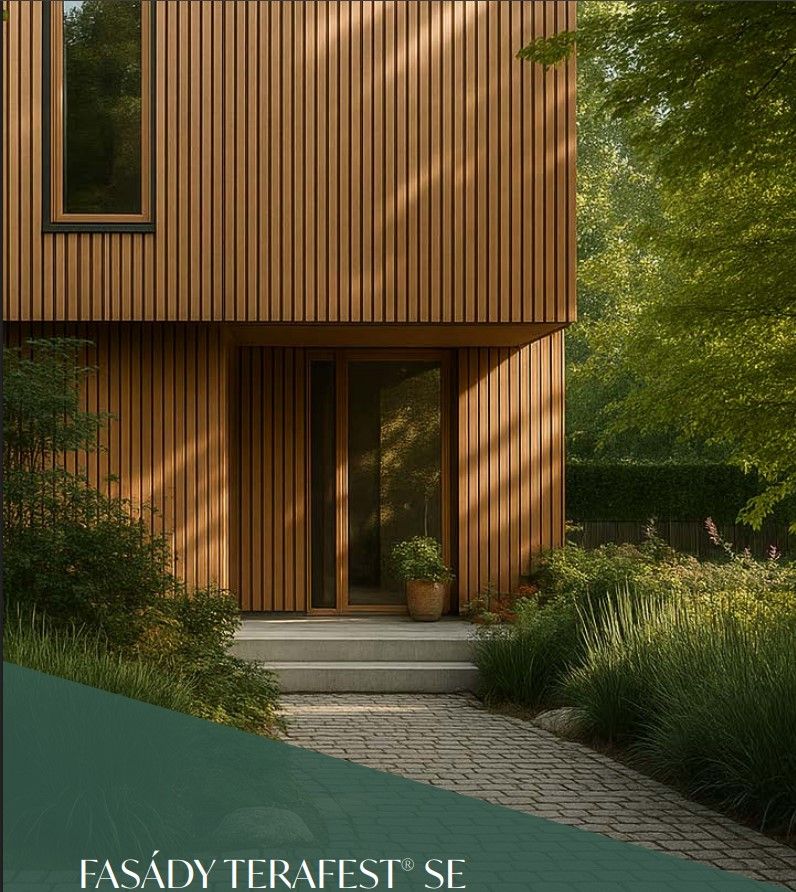 Predstavujeme vám úplne nové portfólio fasádnych profilov, ktoré sme vyvinuli na základe častejšieho dopytu po trvanlivom a netradičnom riešení fasád. Vonkajšie fasádne profily sú originálnou voľbou na obloženie exteriérových stien, oporných prvkov, stĺpov, portálov a štítov. Pre svoju vysokú odolnosť, stálosť a minimálnu potrebu údržby sú dlhodobým riešením pre obklady stien okolo terasy, záhradných múrikov, pergol a parkovacích prístreškov. Vyberať si môžete zo širokej škály farieb, ktoré je možné štýlovo ladiť s terasou aj plotom. Dokonale imitujú samotné drevo, ale eliminujú jeho nedostatky. Obklad v imitácii dreva má vysokú odolnosť proti poveternostným vplyvom (slnko, dážď, mráz, sneh), dlhodobo stály tvar a nevyžaduje takmer žiadnu údržbu. Okrem toho majú rovnaký benefit ako terasy, tj. 25-ročnú záruku proti drevokazným hubám, hnilobe a hmyzu. Rovnako tak sa môžete spoľahnúť na to, že sa jedná o rýdzo český výrobok.