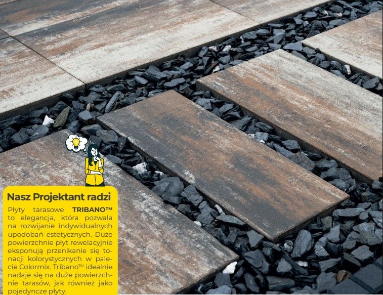 Styrobud Tribano™ je kompozícia troch terasových dlaždíc ideálna na použitie pri úprave záhrady, najmä pri stavbe terás a chodníkov. Terasové dlaždice sú dostupné v rôznych farbách. Trvanlivý, mrazuvzdorný materiál zaisťuje trvácnosť a odolnosť voči poveternostným vplyvom po mnoho rokov.
